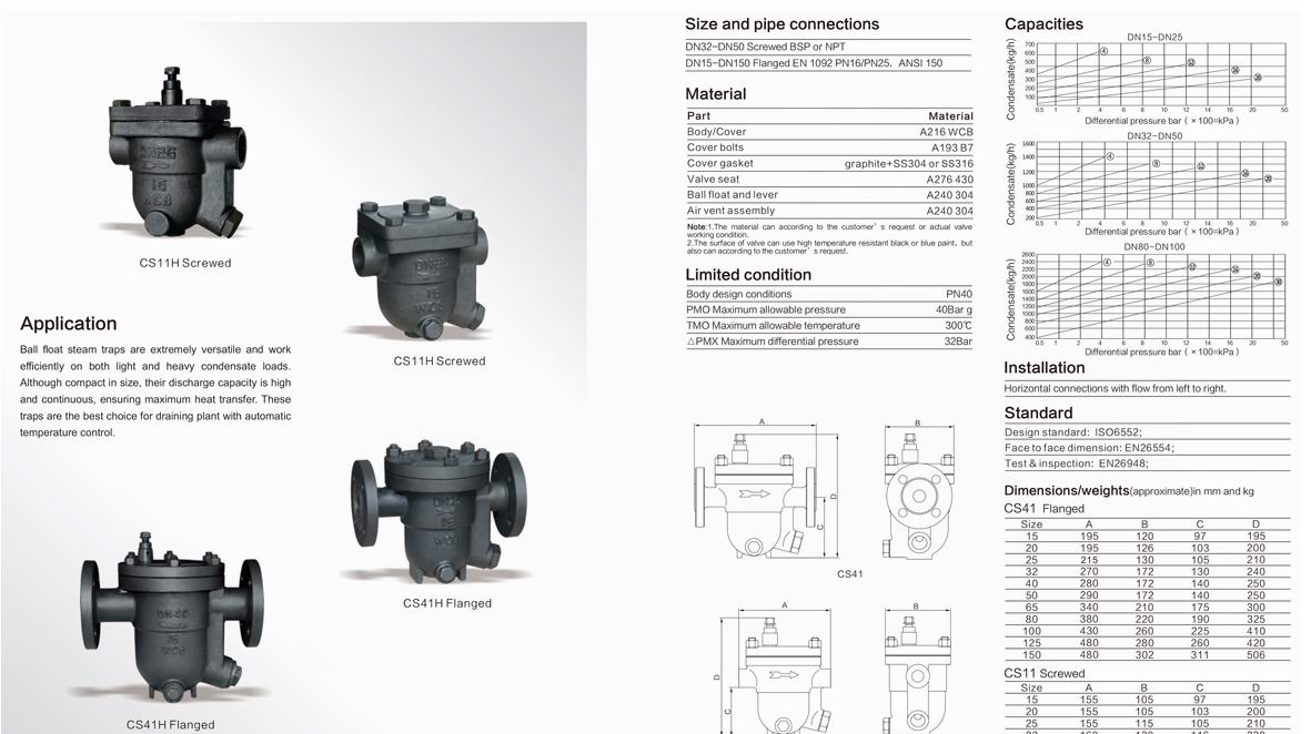 進口自由浮球式蒸汽疏水閥主要零部件材料