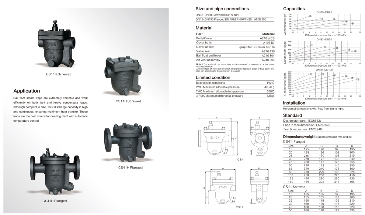 進口蒸汽疏水閥是利用浮力原理,浮球根據凝結水量的多少隨水位的變化而作升降,自動調節閥座孔的開度,連續排放凝結水。當凝結水停止進入時,浮球靠自重降到底部,關閉排水閥座孔。由于排水閥座孔在凝結水水位以下,水汽自然分離,形成水封,達到無蒸汽泄漏。適用于任何一種不希望積液的工況,尤其適用于造紙、印染行業的滾筒烘干機(帶虹吸管結構),廣泛安裝在化工單位中的各種中、低壓換熱設備。