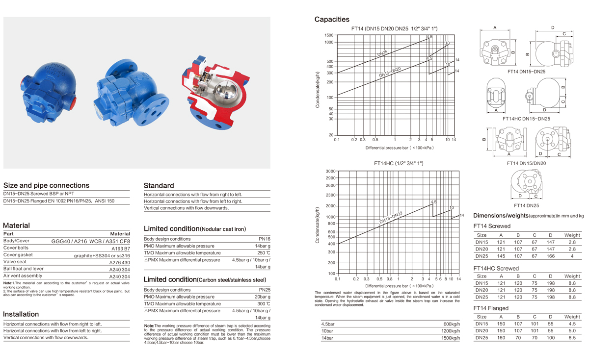 進口杠桿浮球式蒸汽疏水閥主要技術參數(shù)