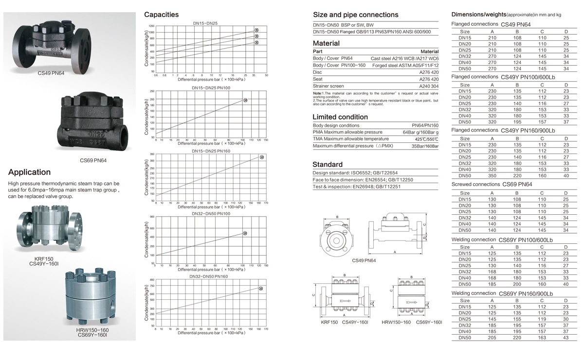 進口高壓熱動力式疏水閥技術參數