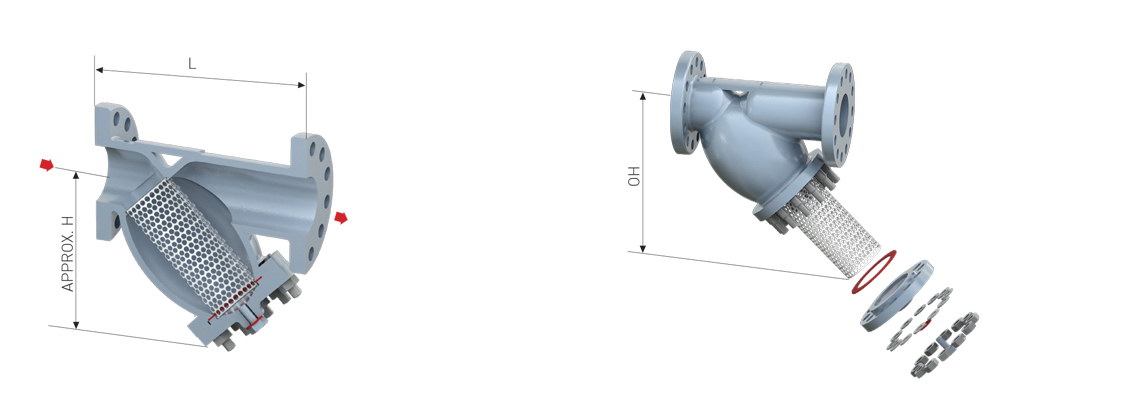 進(jìn)口蒸汽Y型過(guò)濾器是輸送介質(zhì)的管道系統(tǒng)不可缺少的一種過(guò)濾裝置,Y型過(guò)濾器通常安裝在減壓閥、泄壓閥、定水位閥或其它設(shè)備的進(jìn)口端,用來(lái)清除介質(zhì)中的雜質(zhì),以保護(hù)閥門及設(shè)備的正常使用。Y型過(guò)濾器具有結(jié)構(gòu)先進(jìn),阻力小,排污方便等特點(diǎn)。Y型過(guò)濾器適用介質(zhì)可為水、油、氣。一般通水網(wǎng)為18~30目,通氣網(wǎng)為10~100目,通油網(wǎng)為100~480目。 籃式過(guò)濾器主要由接管、主管、濾藍(lán)、法蘭、法蘭蓋及緊固件等組成。當(dāng)液體通過(guò)主管進(jìn)入濾藍(lán)后,固體雜質(zhì)顆粒被阻擋在濾藍(lán)內(nèi),而潔凈的流體通過(guò)濾藍(lán)、由過(guò)濾器出口排出。